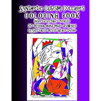 Synthetic Cubism Collages COLORING BOOK Inspired by Pablo Picasso Learn the Style with 21 Original handmade drawings by Surrealist Artist Grace Divine Details